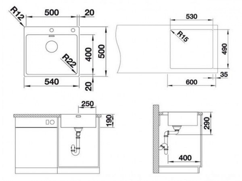 Способы установки: | В столешницу сверху, В уровень со столешницей |