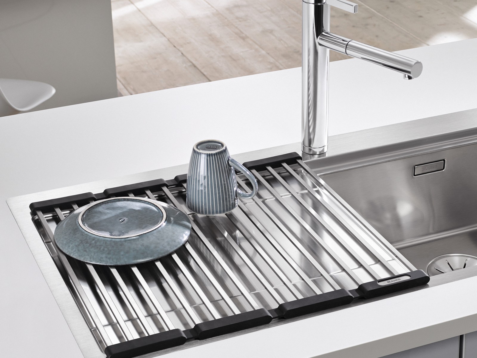 Умные аксессуары делают повседневную жизнь на кухне комфортной и ,следовательно, более эффективной. Новая складная решетка Blanco как раз является таким умным и полезным аксессуаром. Она универсальна: подходит в качестве поддона или дополнительного места для хранения над раковиной, а также является практичным помощником на столешнице или обеденном столе.