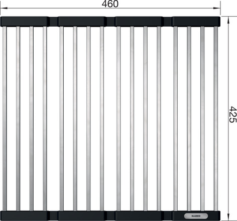 Складная решетка состоит из высококачественных стержней из нержавеющей стали, которые соединены эластичными нескользящими полосками из силикона. Таким образом, с одной стороны, она очень прочная, с другой - гибкая: её можно установить, например, в зигзагообразной форме, чтобы позволить бокалам для вина лучше просохнуть. Если решетка не нужна, её можно сложить, чтобы сэкономить место, или положить её на край мойки, или убрать в шкаф. Новая складная решетка рекомендуется в качестве дополнительного аксессуара для любых кухонных моек Blanco.