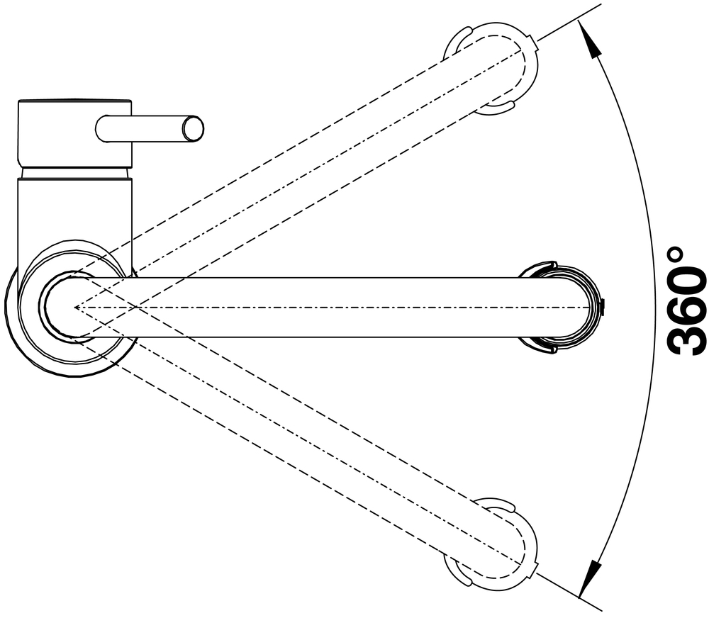 Угол поворота излива: